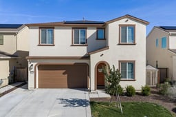 2023 Lennar Energy-Efficient Home with Low Solar Lease! Welcome to this beautifully designed 2023 Lennar-built two-story home offering 4 bedrooms, 3 full baths, and a versatile layout ideal for today's lifestyle. Featuring an affordable solar lease at just $73 per month, this home delivers energy efficiency and cost savings while maximizing comfort. The main level includes a full bedroom and full bath perfect for guests, multigenerational living, or a private office. The open-concept kitchen shines with quartz countertops, modern cabinetry, all energy efficient appliances included, including the refrigerator, making it truly move-in ready. A gas cooktop and gas-forced air heating provide efficiency and performance, while the remainder of the home operates on electricity enhanced by solar power. Upstairs, enjoy a spacious loft ideal for a second family room, media space, game room, or work-from-home hub. The large primary suite offers views of the snow topped sierras as well as an en-suite bath featuring dual sinks, quartz countertops, and a huge walk-in closet. Two additional bedrooms and a full bath complete the upper level. Built with Lennar's signature energy-conscious features and modern construction standards, this home offers comfort, efficiency, and low-maintenance living. Located within the highly regarded Elk Grove Unified School District with convenient commuter access to downtown Sacramento, Elk Grove, and surrounding areas. Nearly new construction without the builder wait move in and enjoy.